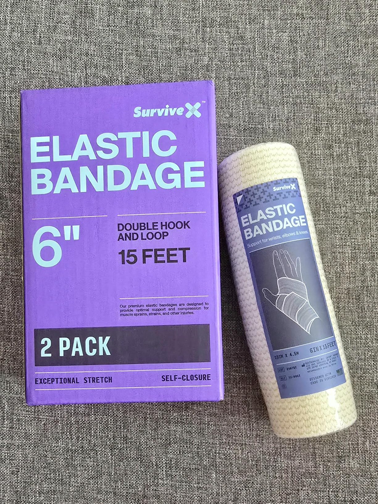 ✔️ VERSATILE ELASTIC BANDAGE WRAP — Ideal for first aid, sports injuries, and recovery. SurviveX elastic bandages are perfect for compression on legs, arms, and joints. They're excellent for wrapping the foot, ankle, wrist, knee, elbow, or for securing dressings and thermal packs. These bandages help alleviate soreness, sprains, strains, and swelling.