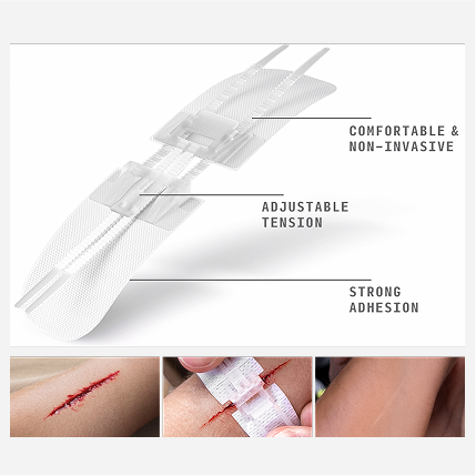 Non-invasive alternative to stitches. Helps to heal wounds faster, and reduces scarring.