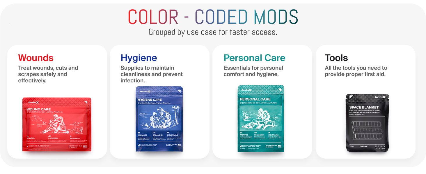Supplies are color-coded & labeled for instant access! Find wound, hygiene, and tool kits fast—no fumbling when every second counts. 🌟