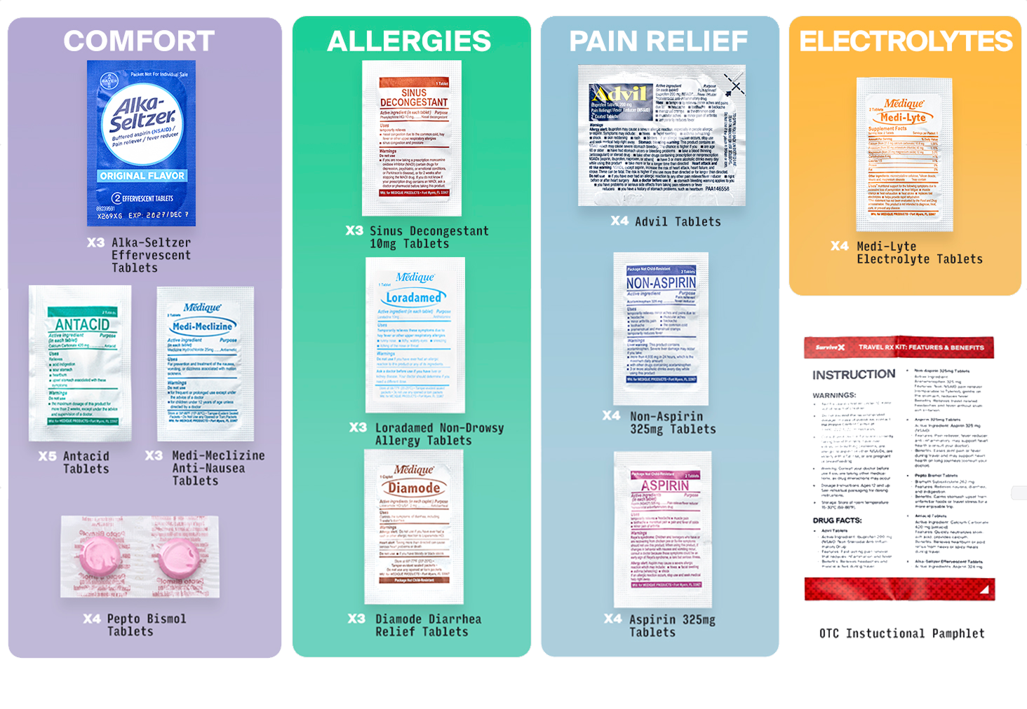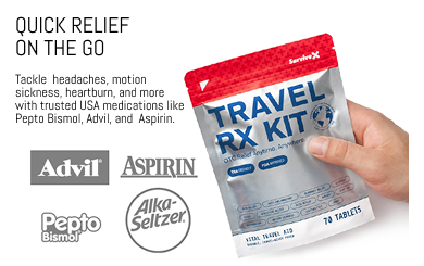 Embark on your journeys with confidence using the SurviveX Travel Medicine Kit. This compact, travel-friendly kit is packed with essential over-the-counter medications to address common travel issues like headaches, allergies, motion sickness, heartburn, and more. Perfect for camping, cruises, or international adventures, it ensures you’re prepared without the hassle of finding a pharmacy or navigating language barriers.